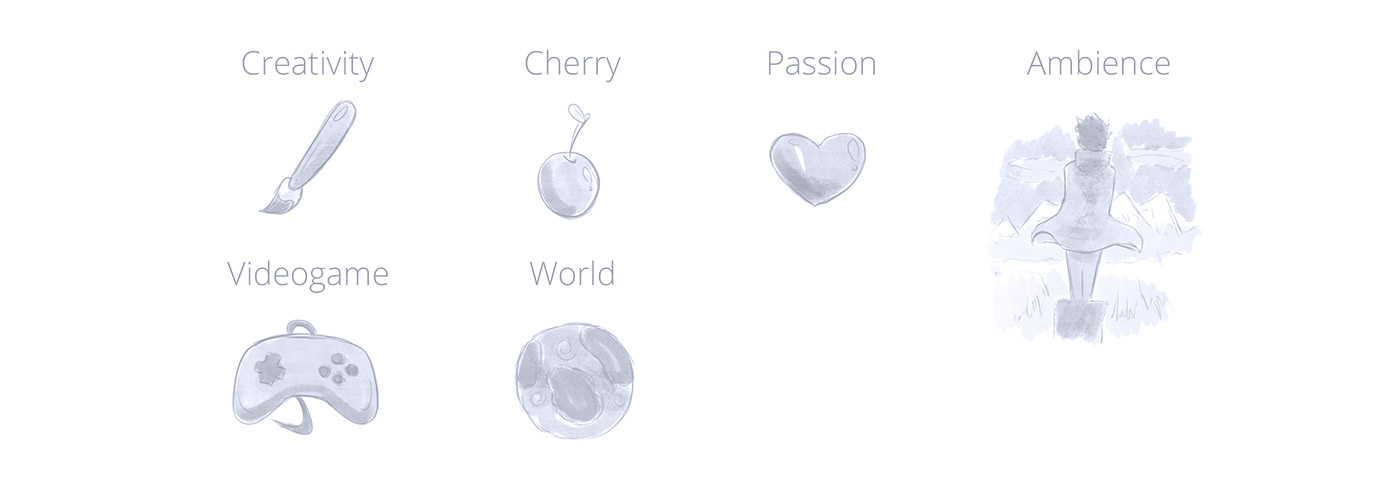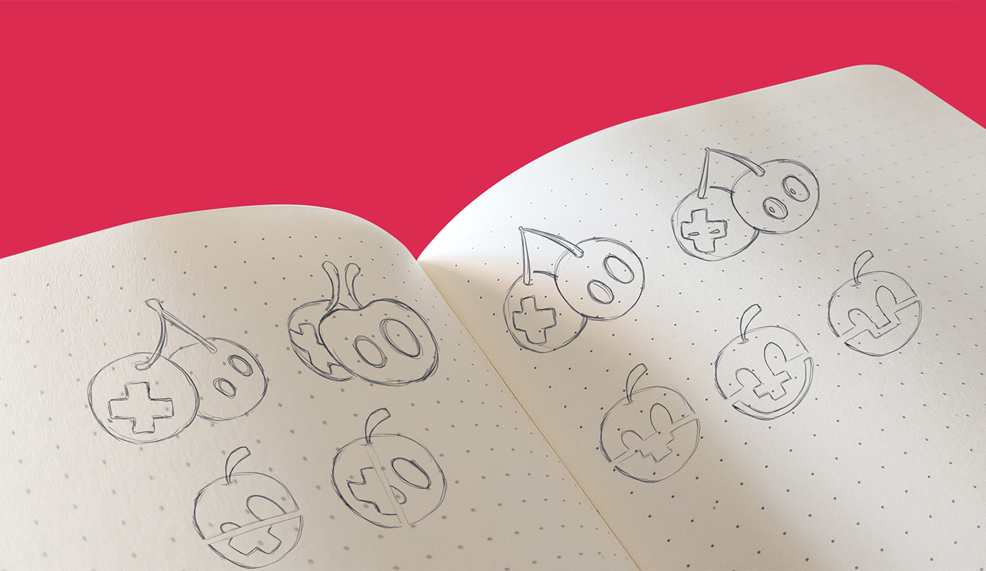 Tenendo sempre come riferimento la forma di una ciliegia, ho sperimentato soluzioni per inserire i pulsanti del controller, già presenti nel logo precedente.
